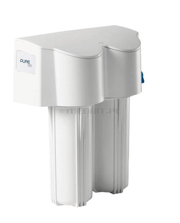 Urządzenie gwarantuje ciągłe dostarczanie wody demineralizowanej niezbędnej do każdego cyklu sterylizacji. System pracuje w pełni automatycznie, eliminując konieczność nadzorowania procesu oczyszczania wody i znacząco usprawniając codzienną pracę. Dzięki dwóm wymiennym filtrom żywicznym, PURE 100 zapewnia skuteczne oczyszczanie i łatwą, szybką wymianę filtrów w przypadku pogorszenia jakości wody.