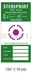 STERIPOINT 134°C/18 min. to wskaźniki klasy 6 do kontroli procesów sterylizacji parowej, stworzone z myślą o profesjonalistach w branży medycznej, stomatologicznej, podologicznej, kosmetycznej oraz w studiach tatuażu. Zostały opracowane i wyprodukowane przez renomowaną firmę STERLAB, z użyciem bezpiecznego, nietoksycznego tuszu, który podczas prawidłowego procesu sterylizacji zmienia kolor z fioletowego na zielony. Dzięki temu interpretacja wyniku jest szybka, jednoznaczna i nie budzi wątpliwości.